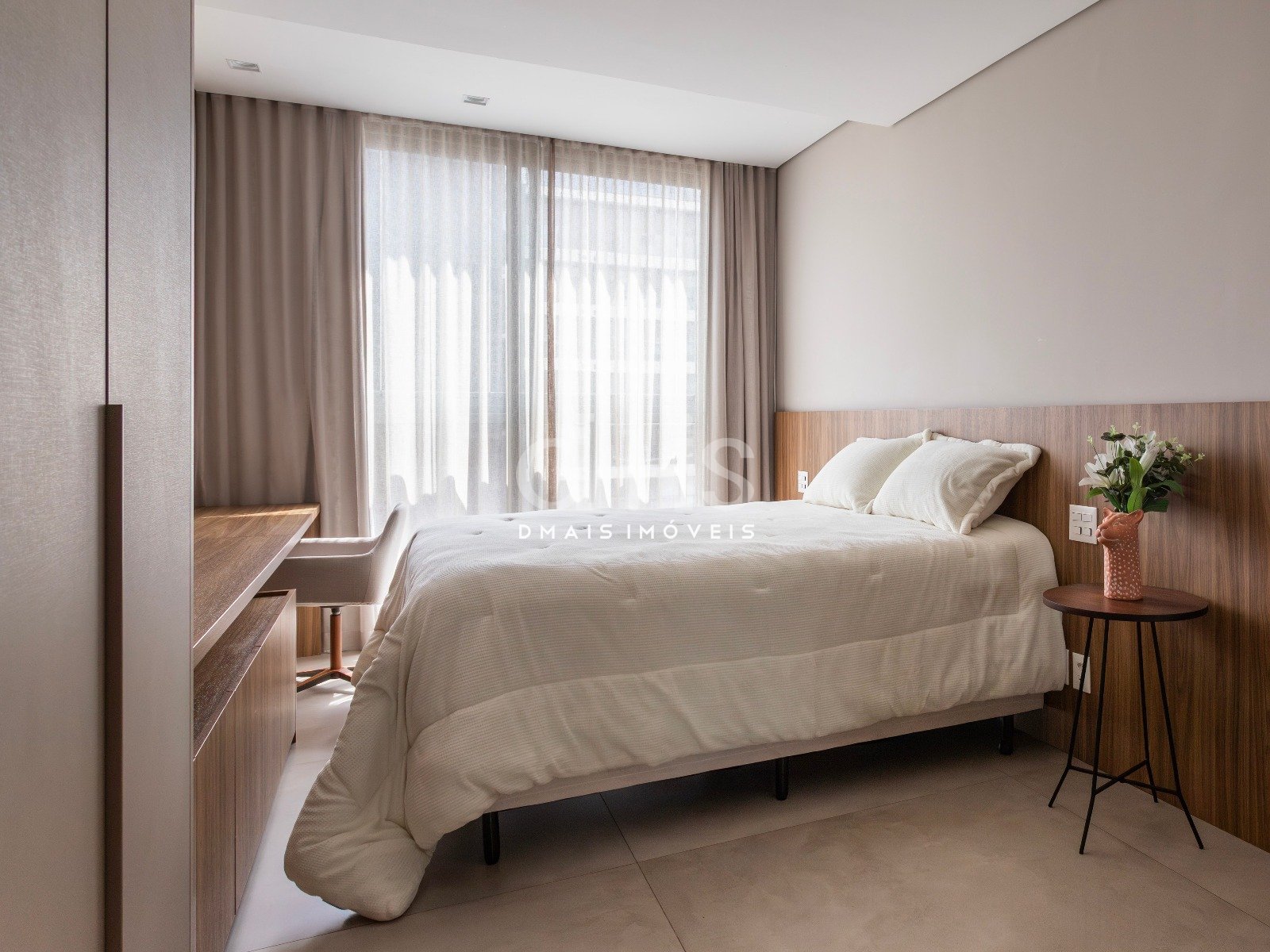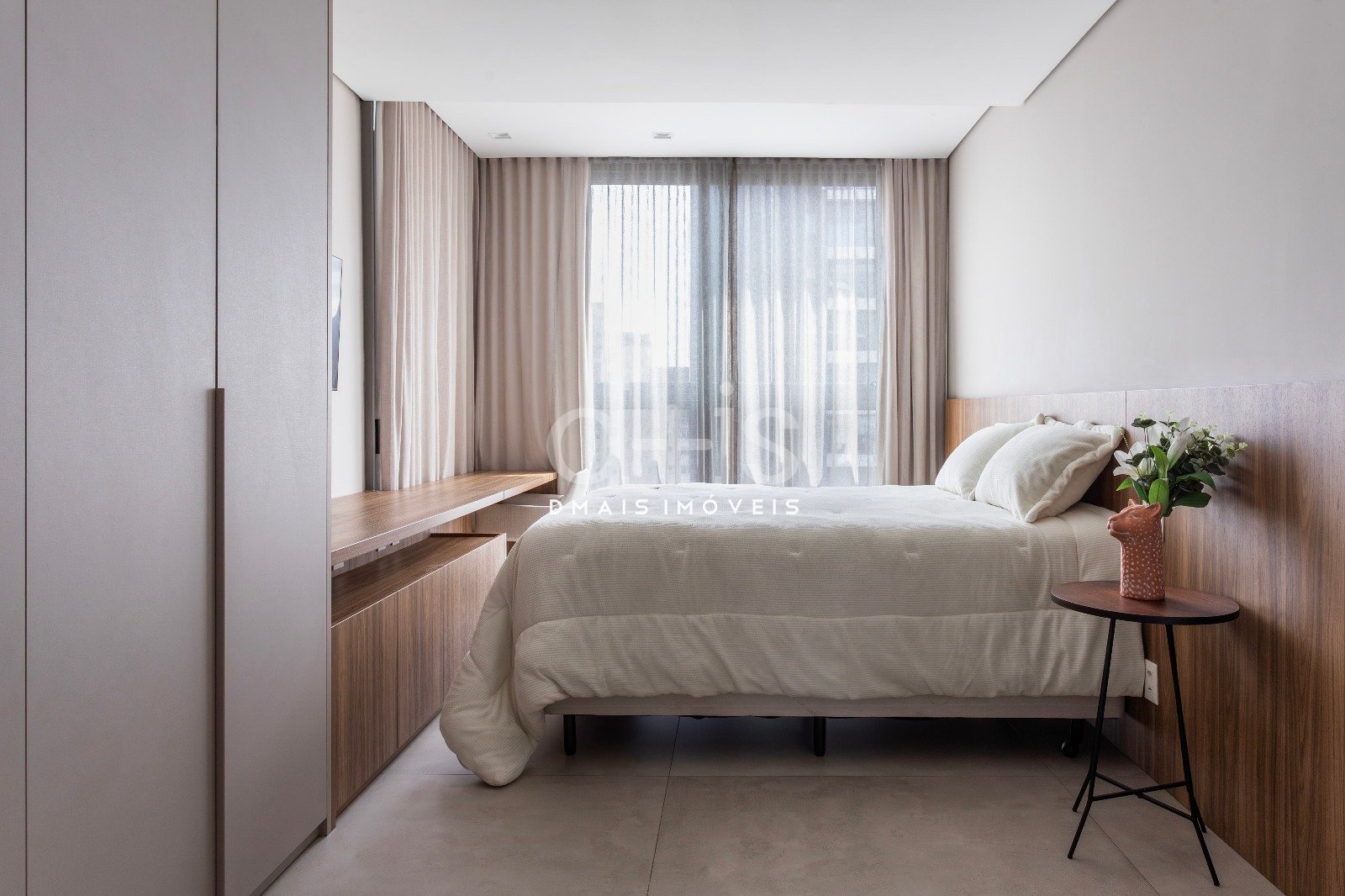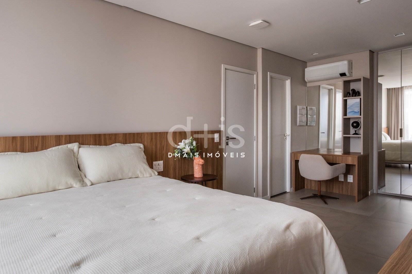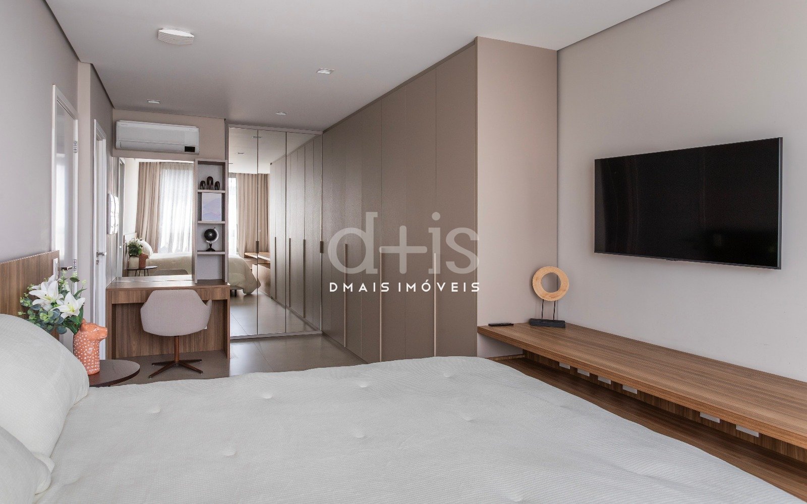 São dois dormitórios bem iluminados, com marcenaria embutida e ar-condicionado em todos os ambientes.