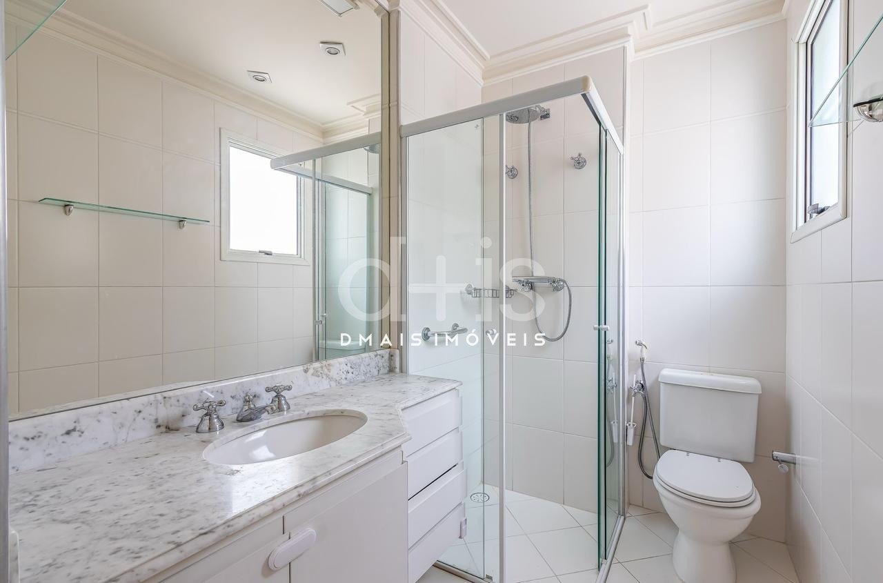 Na área íntima, são três suítes com janelas antirruído, pisos de madeira e portas blindadas, garantindo conforto e segurança.