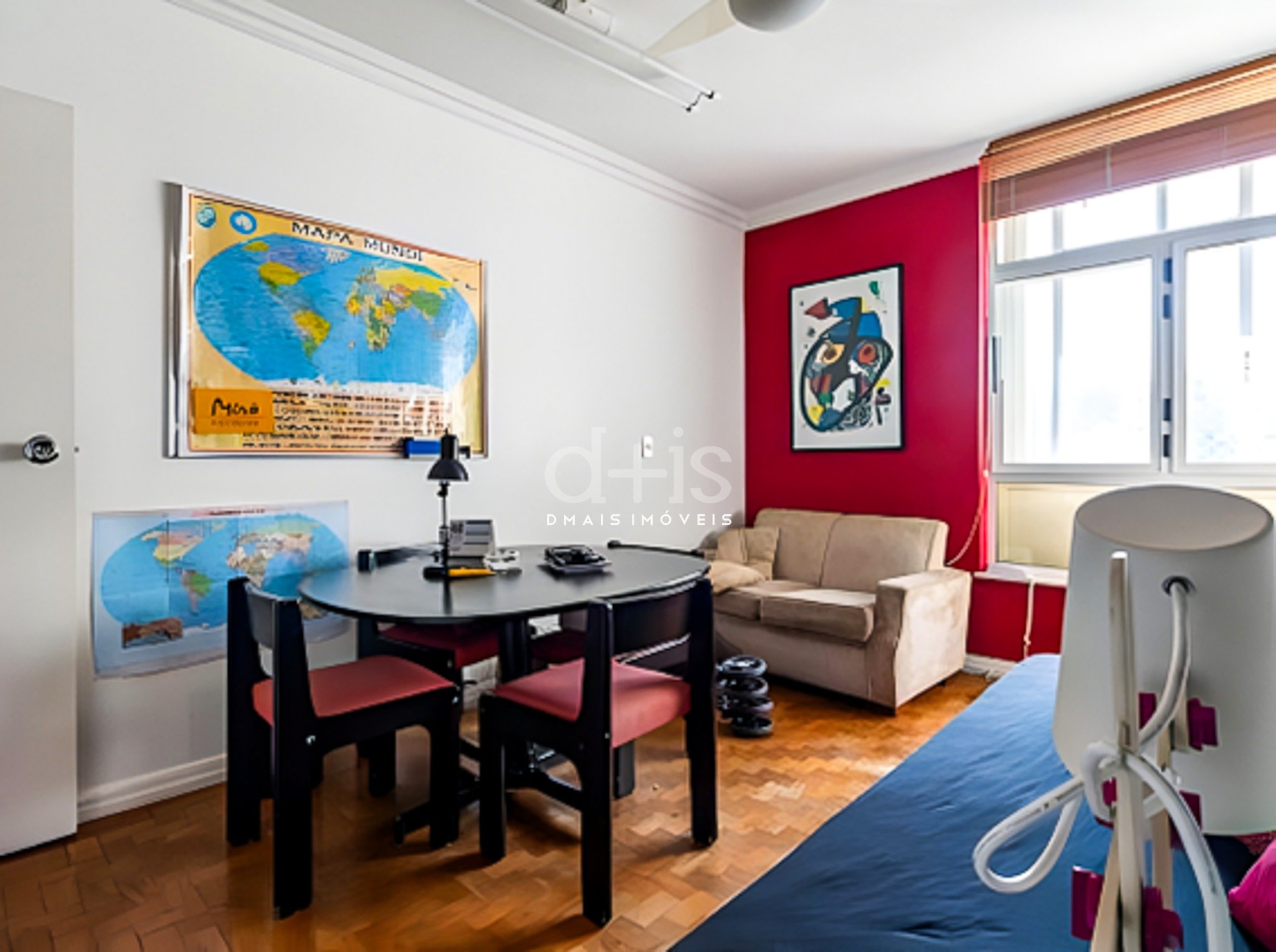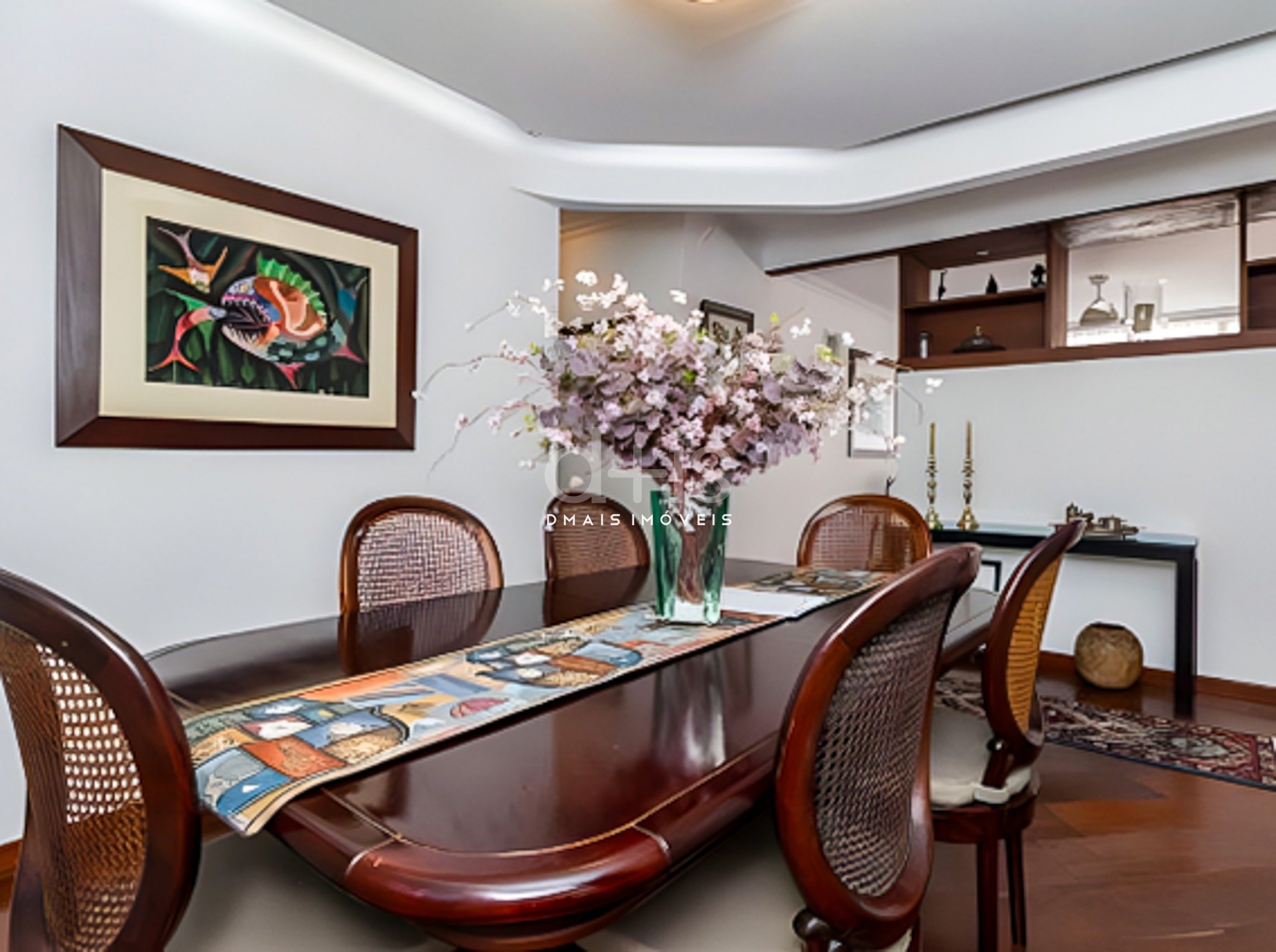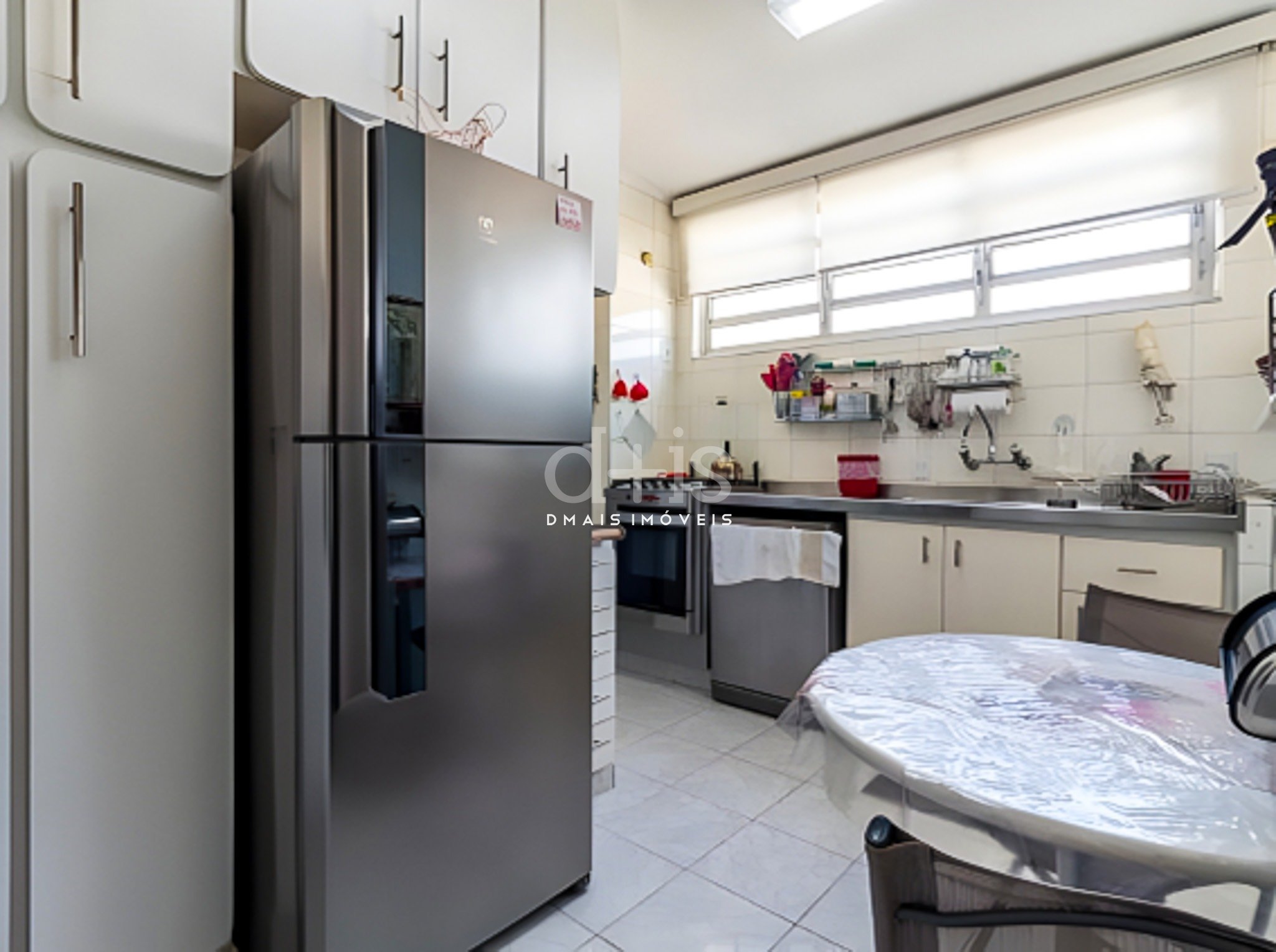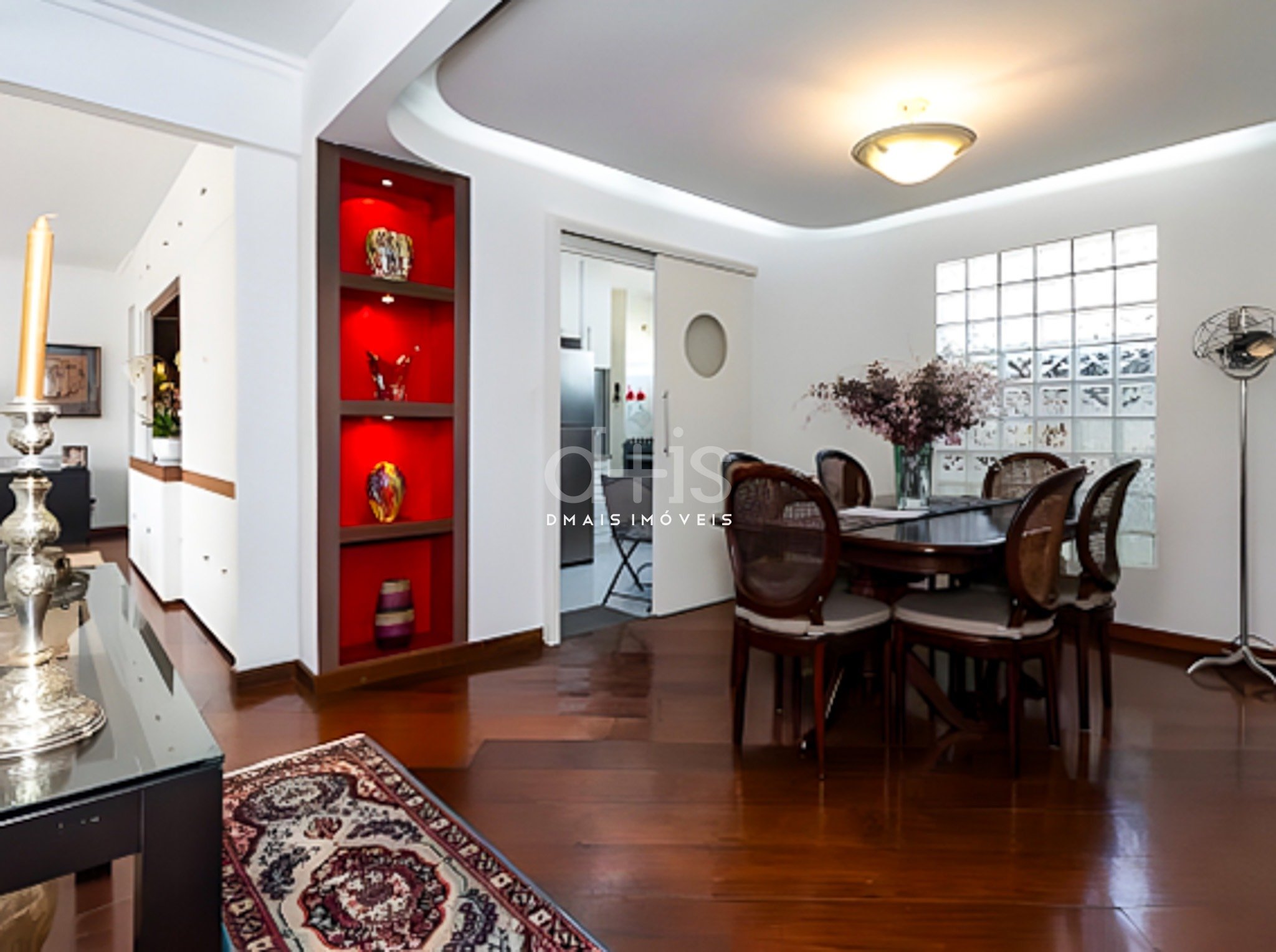 O living para dois ambientes é iluminado por janelões e conta com piso de madeira, enquanto a sala de jantar é separada, trazendo mais privacidade ao convívio. A cozinha é ampla, independente e com ótima entrada de luz natural, ideal para o dia a dia.