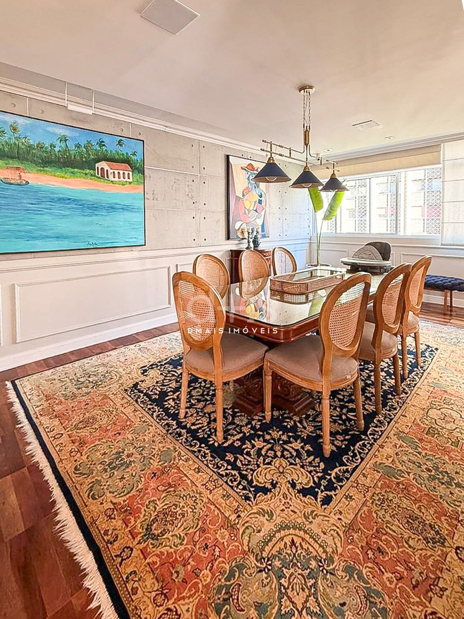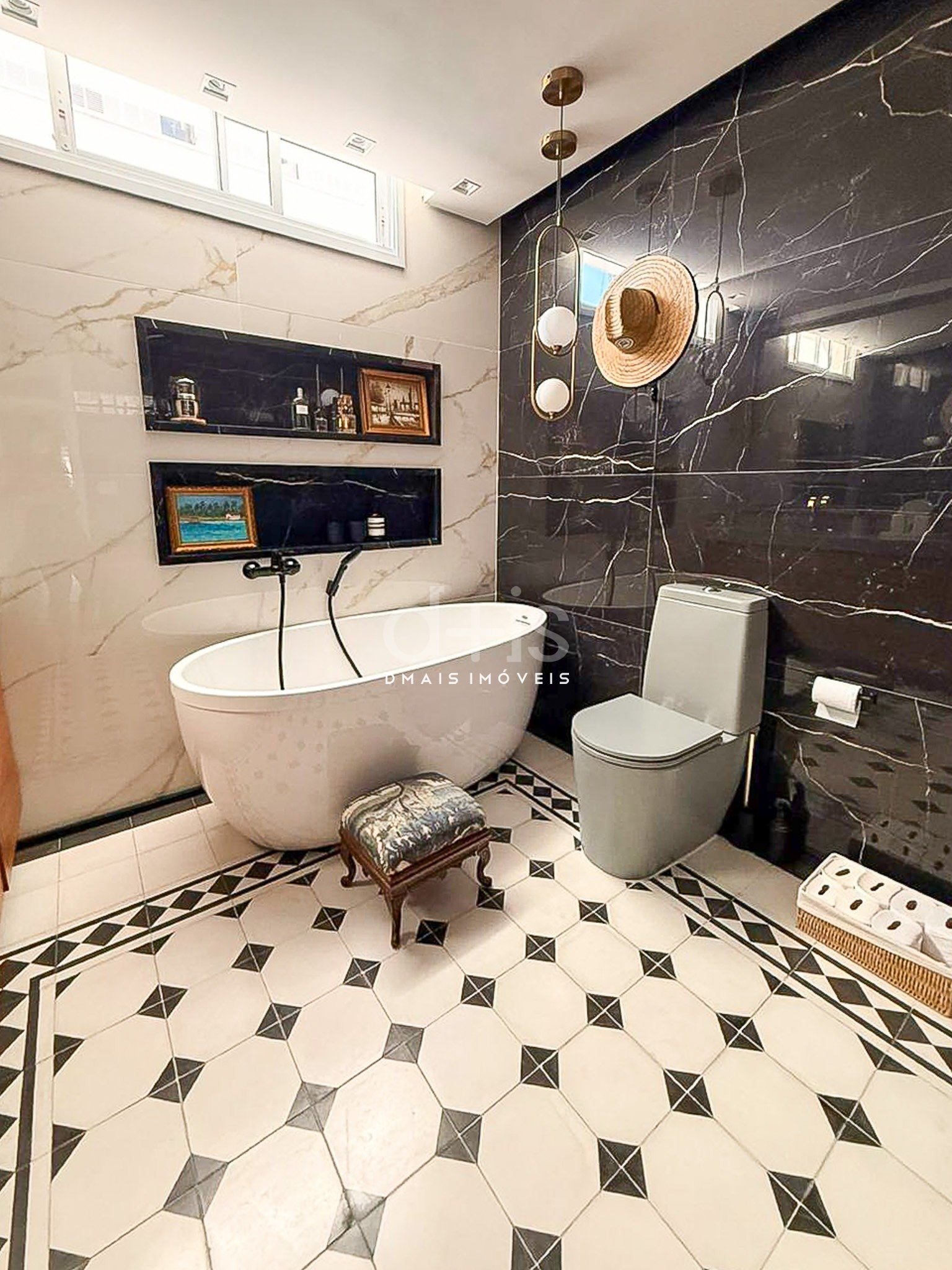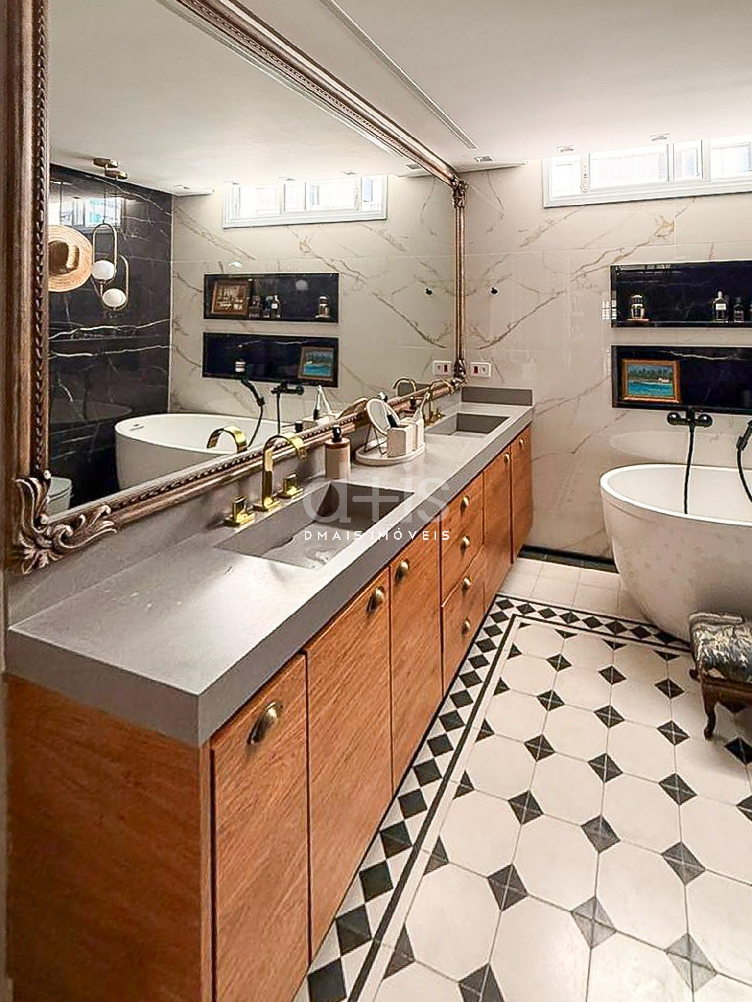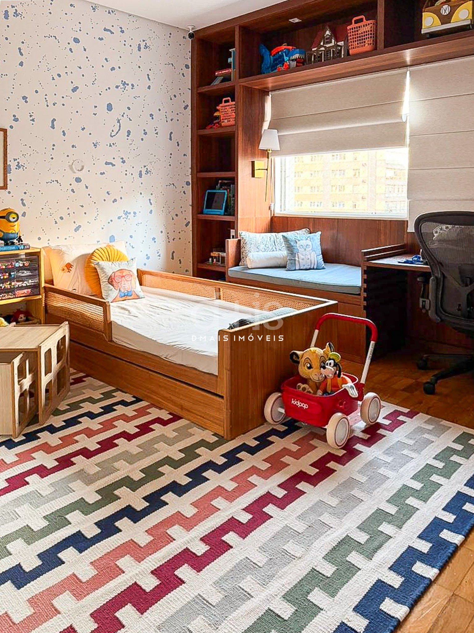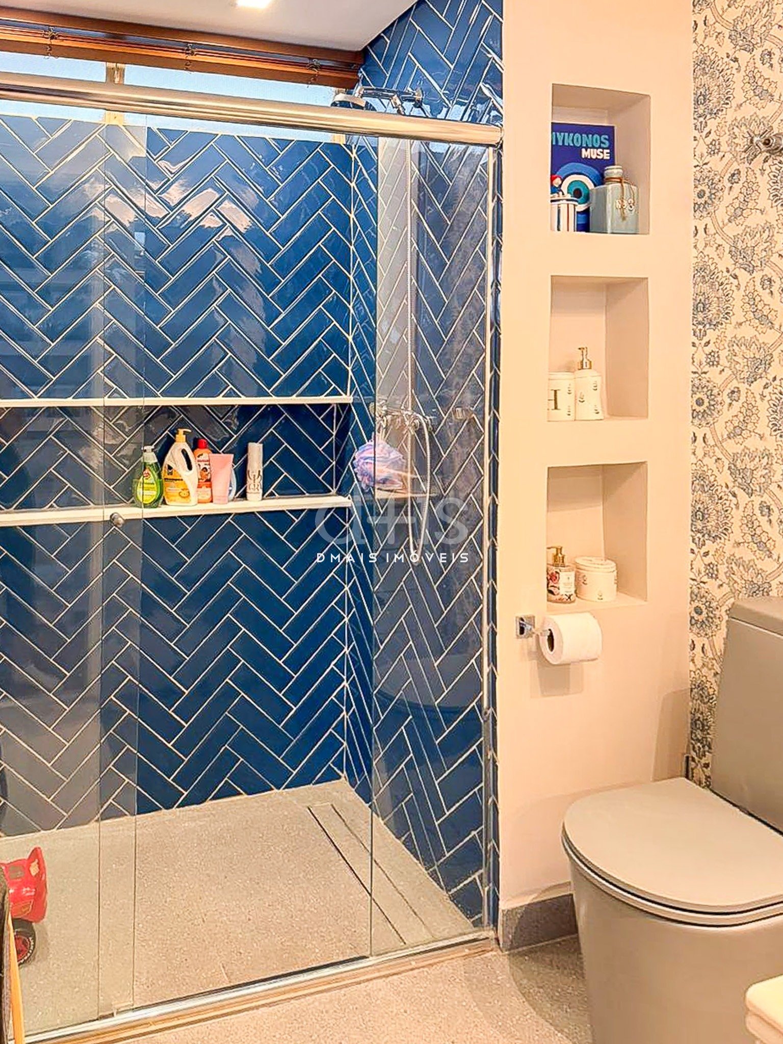 Na área íntima, três dormitórios com ótima iluminação, incluindo uma suíte generosa com closet e banheira. O apartamento conta ainda com ar-condicionado e piso de madeira, reforçando o clima acolhedor.