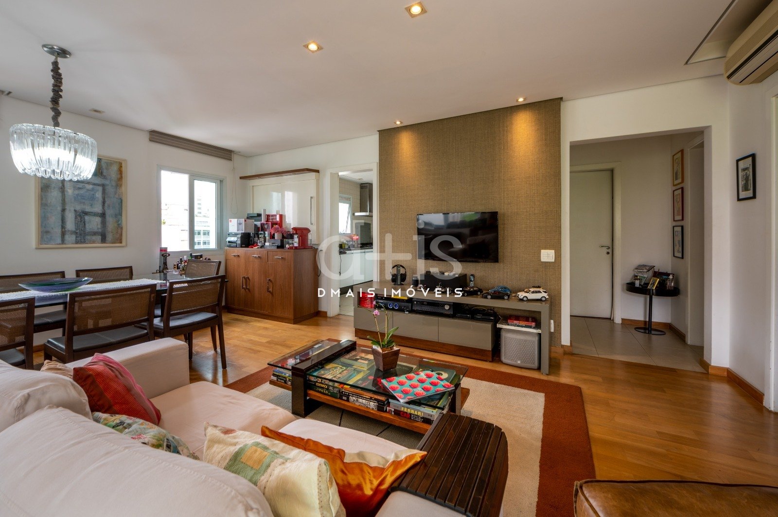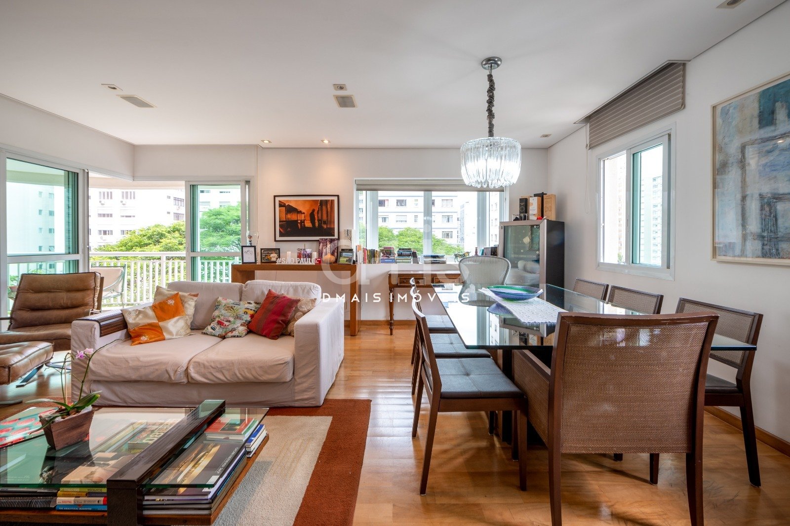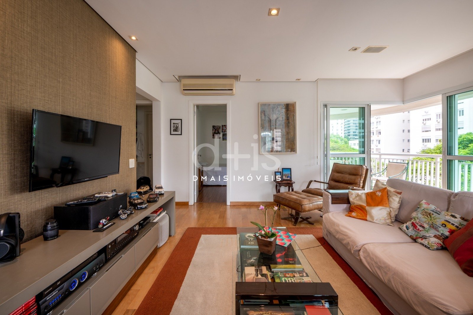 Possui ambientes arejados com muita luz natural, ar condicionado, living para dois ambientes com piso de madeira e varanda aconchegante que tem uma vista para a copa das árvores. São duas confortáveis suítes e duas vagas de garagem.