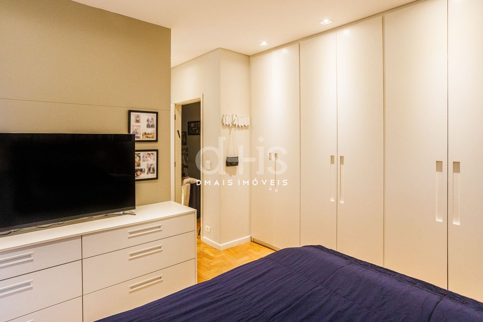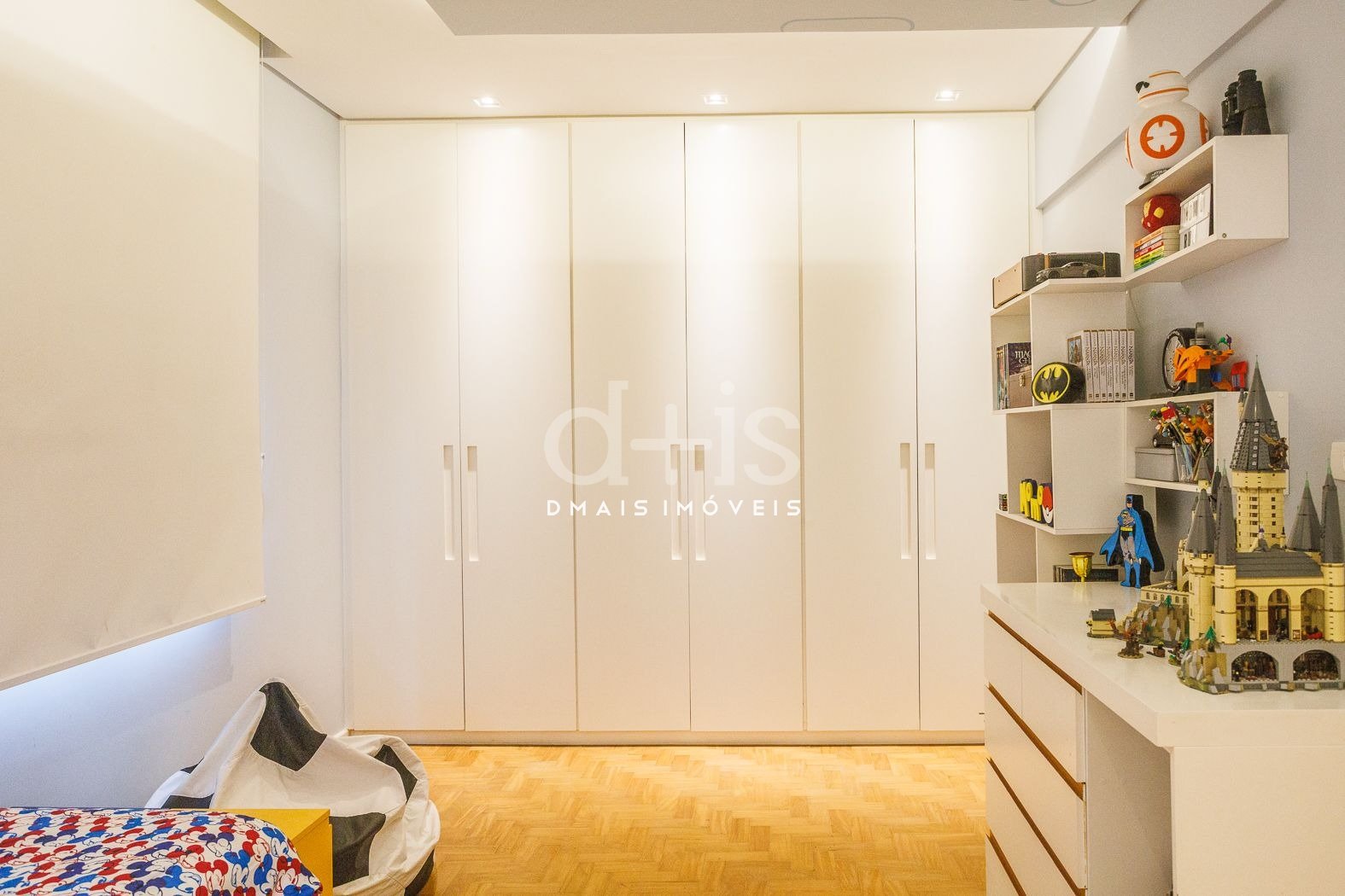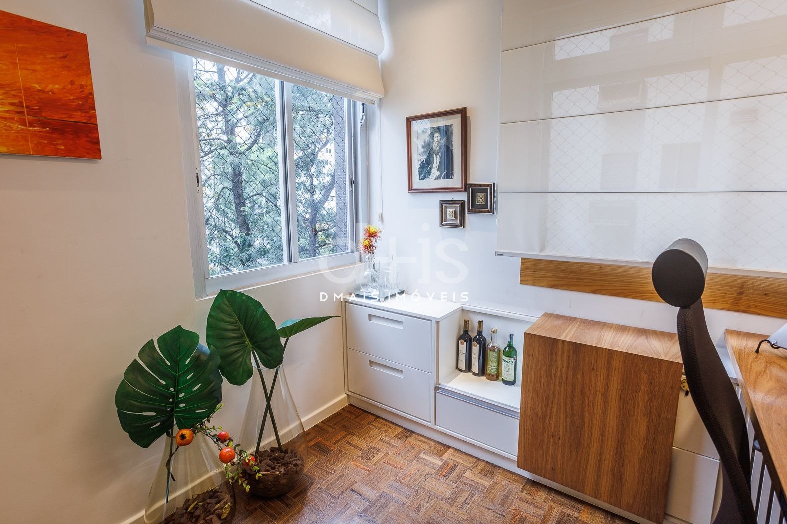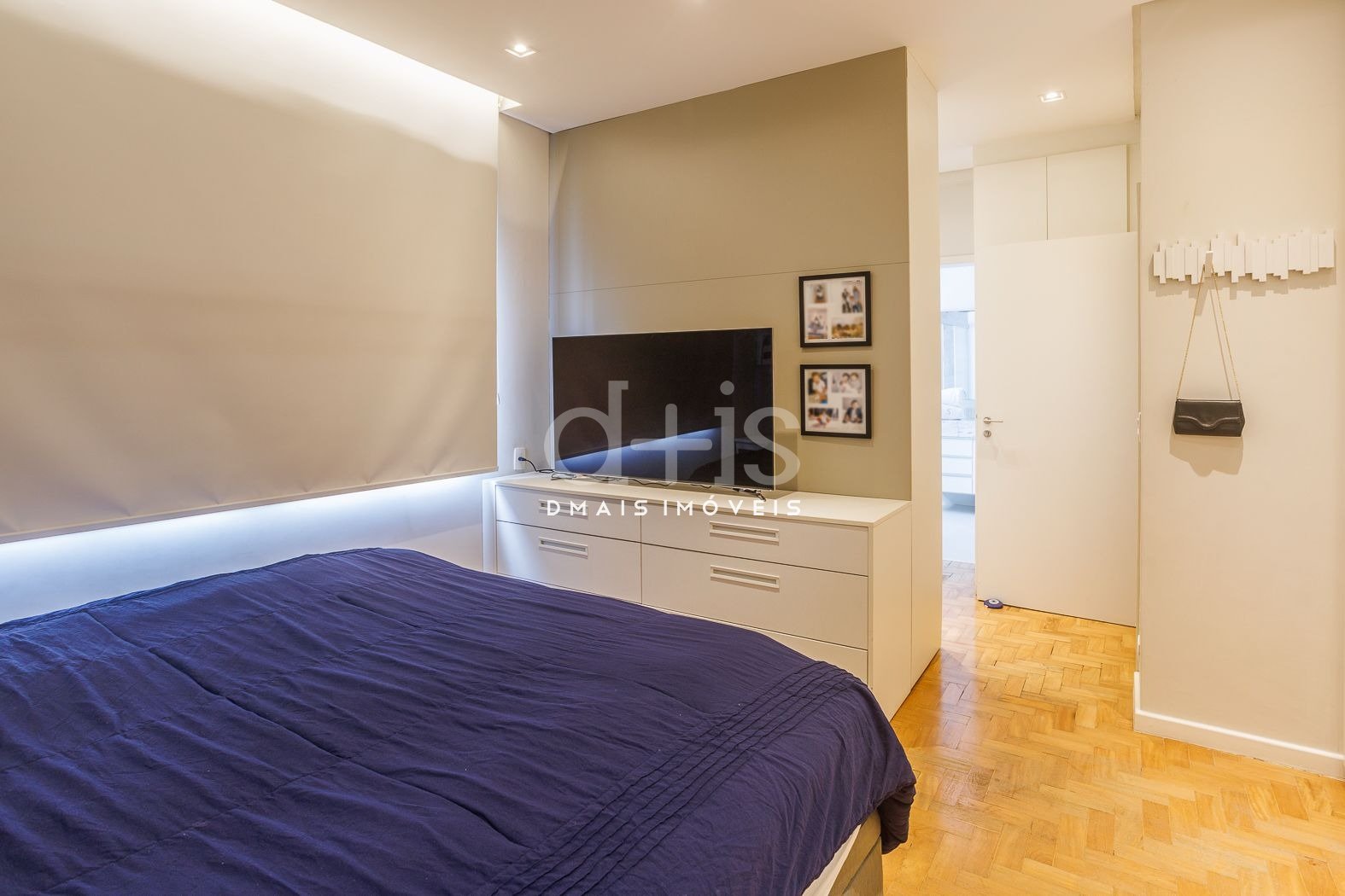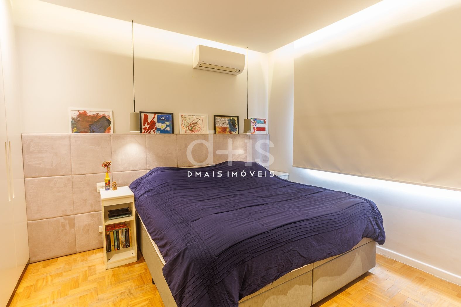 Reformado em 2015/16, o imóvel recebeu nova parte elétrica e hidráulica, além de janelas antirruído nos quartos. O piso de taquinhos de madeira e o ar-condicionado em todos os cômodos reforçam o padrão de alto nível.